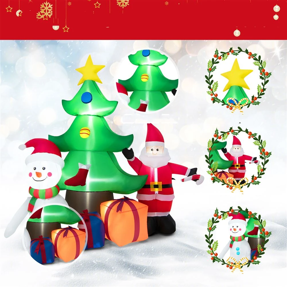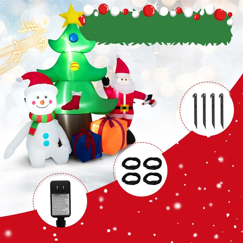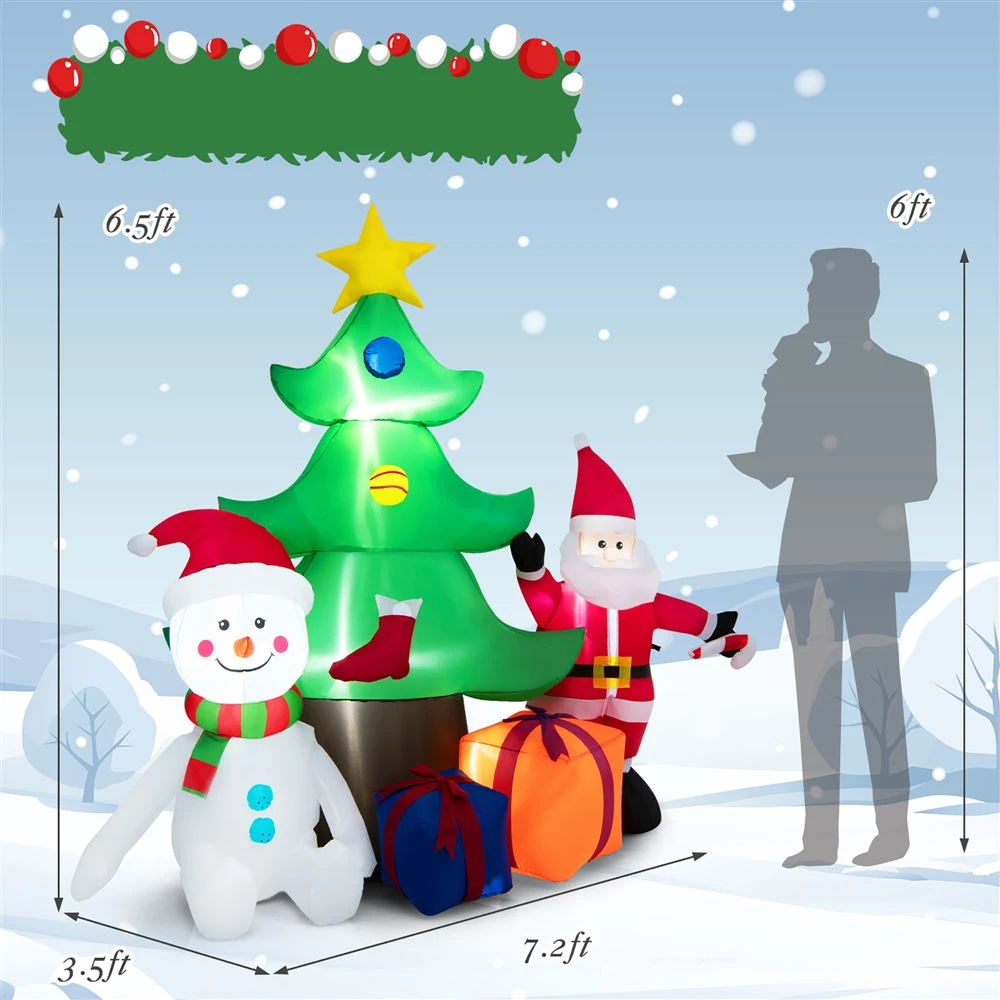 Costway 6.5-ft H Lighted Inflatable Christmas Tree, Snowman And Santa Claus
