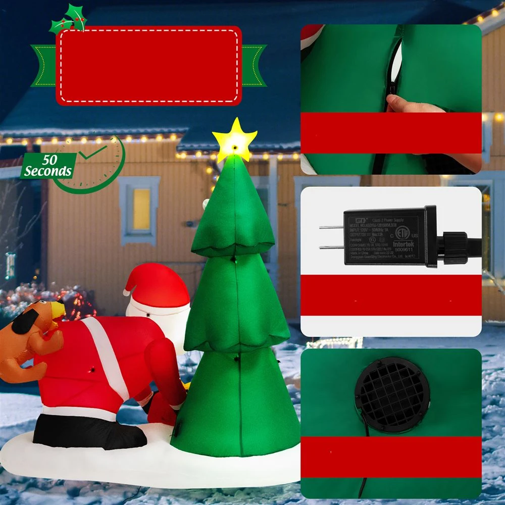 Costway 7-ft H Lighted Inflatable Christmas Tree With Santa Claus Chased By Dog