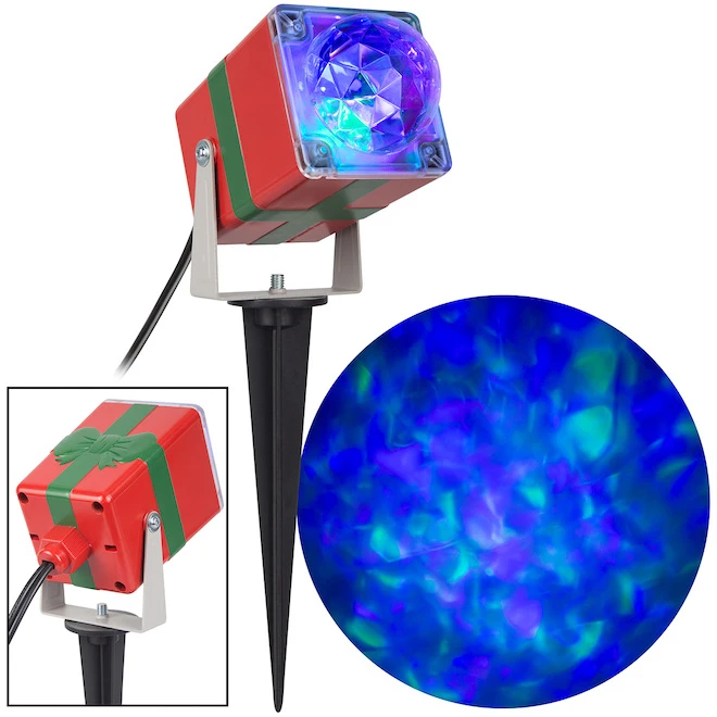 Create a magical and luminous holiday décor effortlessly with the Gemmy projector offering the spectacle of the Northern Sky. This LED spotlight can be used inside or outside to illuminate surfaces with spinning holiday colours! It projects up to 30 feet wide and stakes easily into the ground and swivels for perfect adjustment. It can be combined with other Lightshow® projection(TM) spotlights for beautiful holiday decoration.