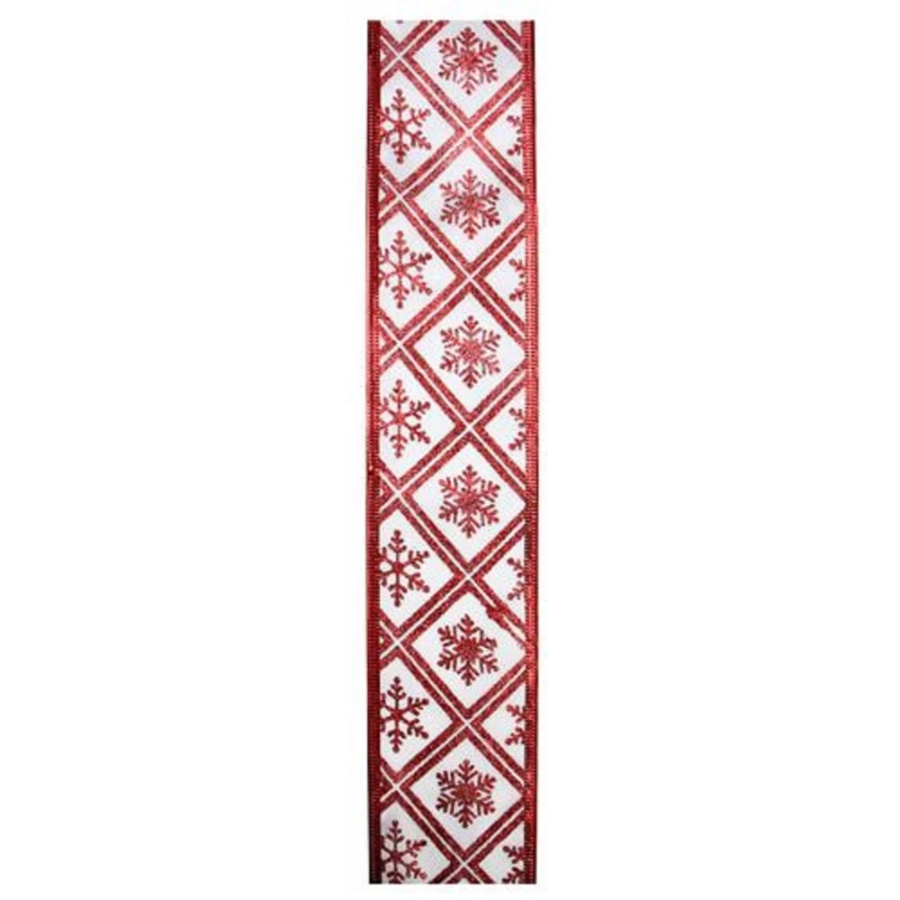 Northlight 2.5-in X 30-ft Red And White Snowflake Christmas Wired Craft Ribbon