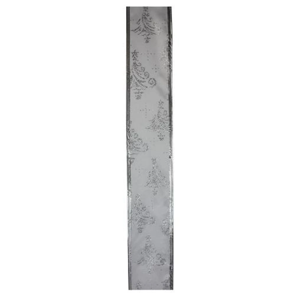 Northlight 2.5-in X 30-ft Silver Glittering Trees Christmas Wired Craft Ribbon