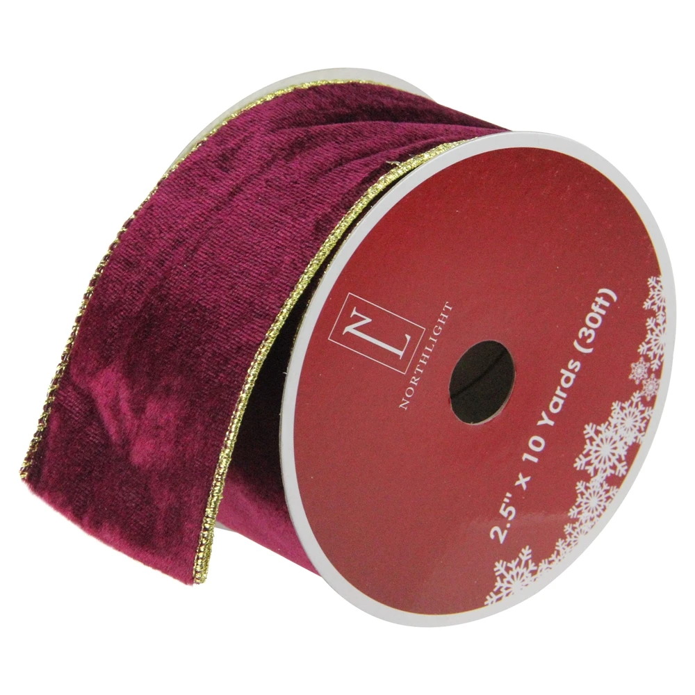 Northlight 2.5-in X 30-ft Solid Wine Red Gold Wired Christmas Craft Ribbon