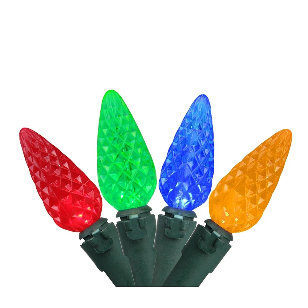- Multicolour LED C6 Christmas lights with green wire