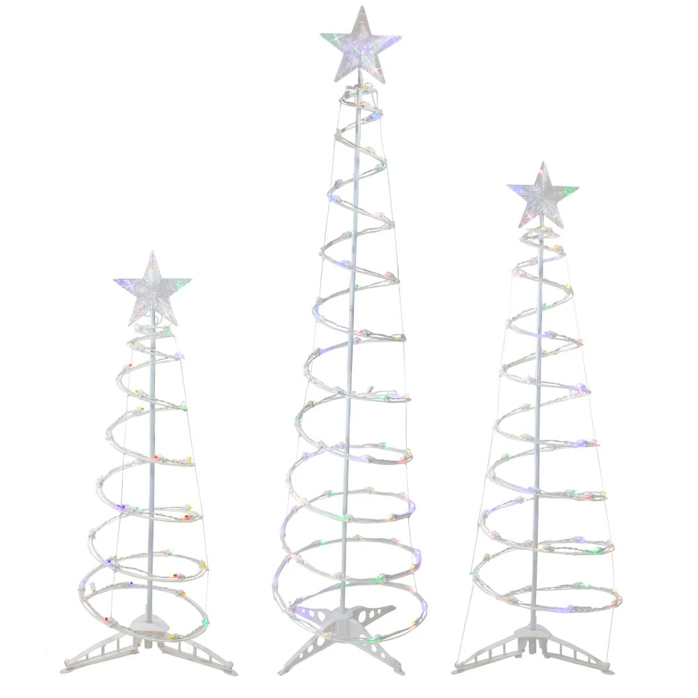Northlight Set Of 3 Outdoor Spiral Christmas Trees With Multicolour LED Lights- 3-ft – 4-ft – 6-ft