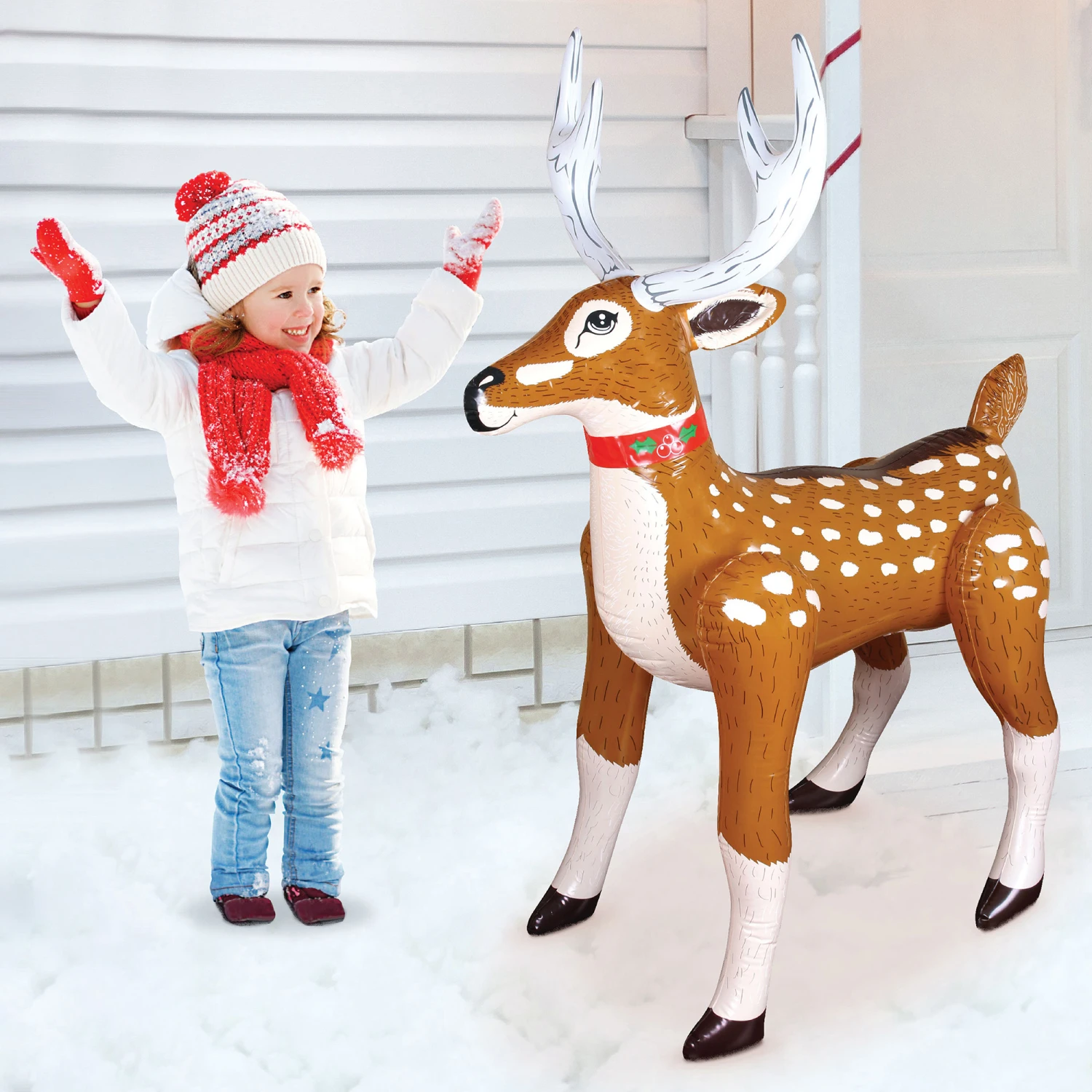 Take your Christmas decorations to the next level with this inflatable reindeer by Occasions. This inflatable is an easy way to add some Christmas spirit to your yard. Simply inflate the unit and watch the reindeer comes to life with its playful vintage design. It’s made of an ultra-durable weather-resistant material, so you can feel confident leaving it outside, even in winter climates. It also includes a repair patch kit in the unlikely scenario where you will need it.