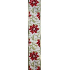 Northlight Poinsettia Print Gold Wired Christmas Craft Ribbon Spools