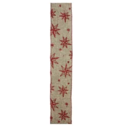 Northlight Star Wired Christmas Craft Ribbon – 2.5-in X 10 Yards – Red And Beige