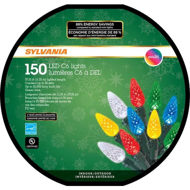Sylvania 150-Count Indoor/Outdoor Multicolour LED C6 Christmas String Lights